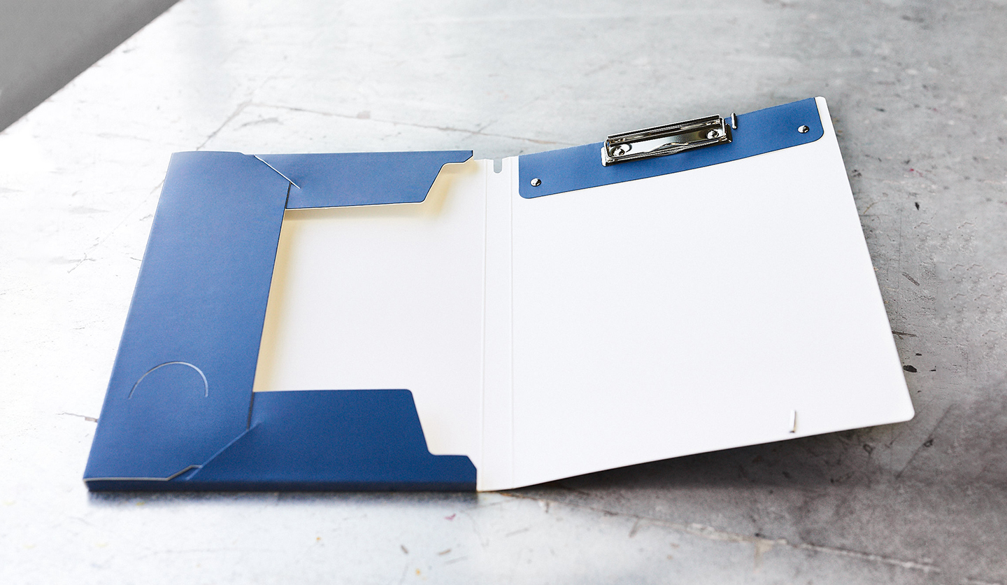 Die Mappe besteht aus einem Chromo-Sulfatkarton mit 530 g/m² bzw. 1.000 g/m² Flächengewicht, welcher ein- oder beidseitig im Offset bedruckt und anschließend verarbeitet wird. Die hohe Grammatur des Kartons gewährt ausreichend Stabilität, dass selbst schwere Seminarunterlagen kein Problem darstellen.