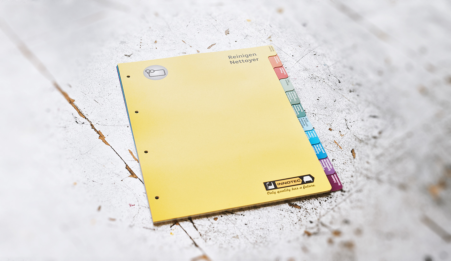 Welcher Mitarbeiter kennt das Problem nicht… kaum ist ein Musterordner etwas länger in Gebrauch, reißen auch schon die ersten Registerseiten aus bzw. die Taben knicken unschön ein. Nicht nur, dass dieser damit unhandlich wird, es leidet ebenso die Übersichtlichkeit auf Grund der bedruckten Taben. Also flickschustert man das Register so lange zusammen bis es nahezu völlig auseinander fällt… Dies ist weder optisch schön, noch spiegelt es den qualitativ hochwertigen Eindruck Ihres Unternehmens sowie Ihrer Produkte und Dienstleistungen wider.
