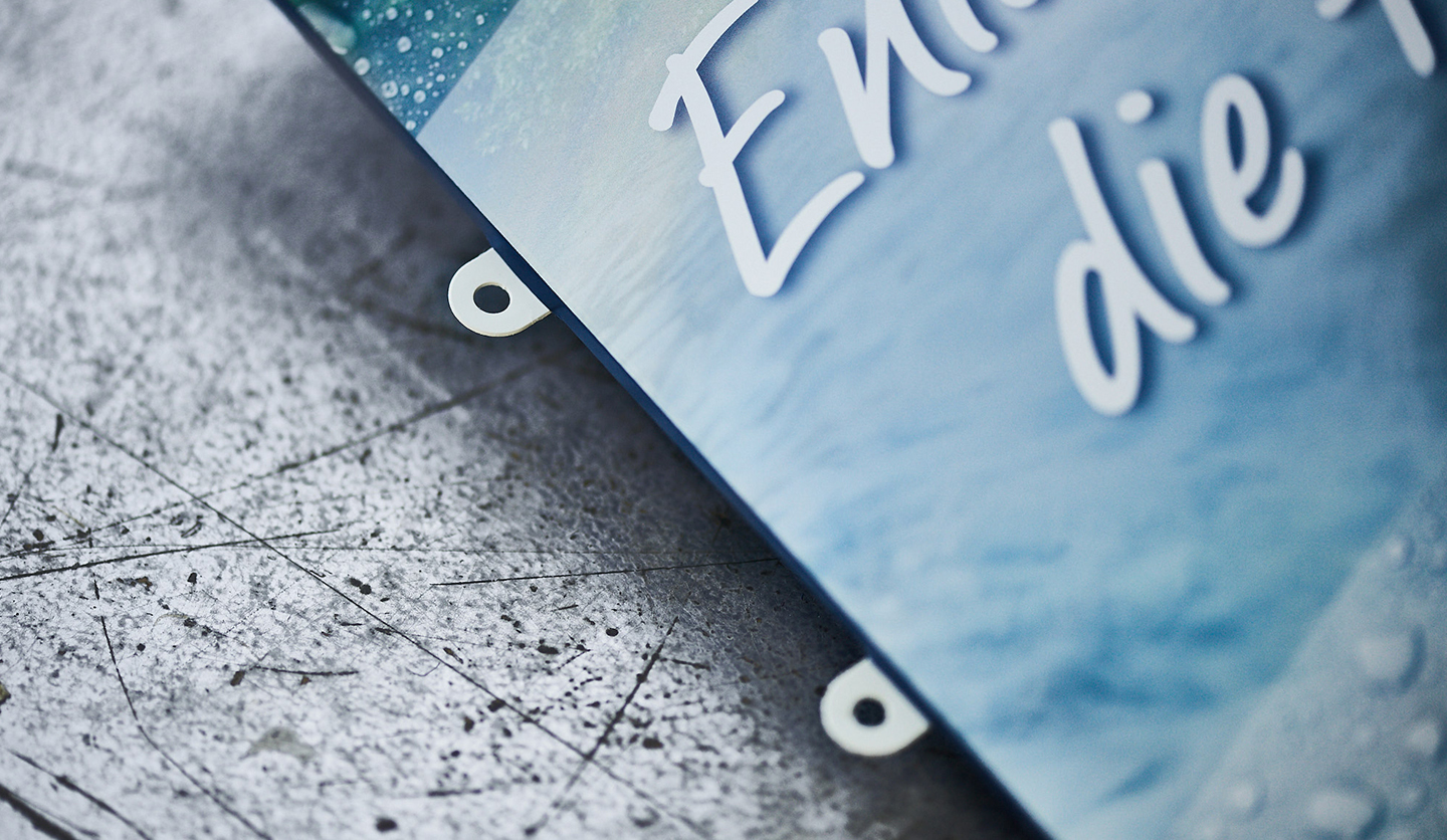 Sämtliche Produkterweiterungsmöglichkeiten in Form von Veredelungen, Klett- oder Gummizugverschlüssen finden Sie hier, sowie eine ausführliche Erklärung dazu im Glossar.