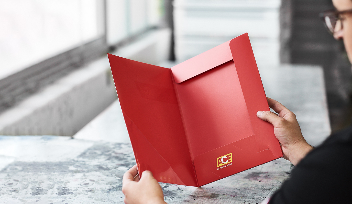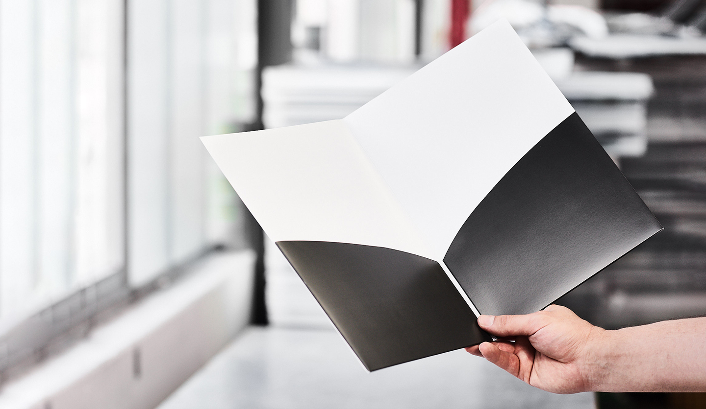 Für die Produktion unserer Mappen verwenden wir ausschließlich qualitativ hochwertige Materialien. Als Standardmaterial verwenden wir hierbei einen Bilderdruckkarton mit einem Flächengewicht von 350 g/m² und einem ausgezeichneten Weißgrad. Als Alternative dazu bieten wir einen gussgestrichenen Chromolux-Karton mit 250 g/m² Flächengewicht an. Je nach Füllhöhe und benötigter Stabilität der Mappen kommen auch 330 g/m² bzw. 380 g/m² Chromo-Sulfatkartons zum Einsatz. Sonstige Sondermaterialien, Premiumkartonagen für Geschäftsausstattungen oder Ähnliches sind auf Anfrage ebenso möglich.