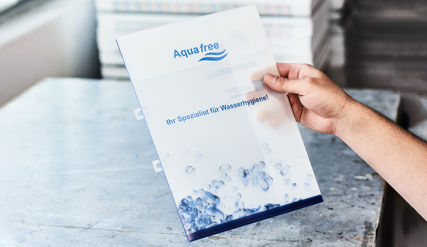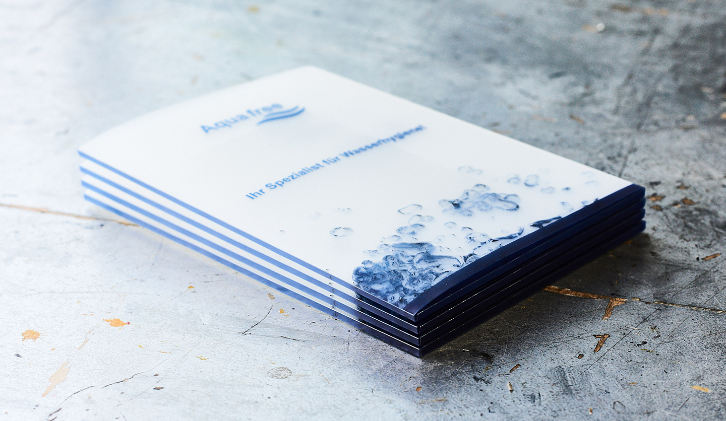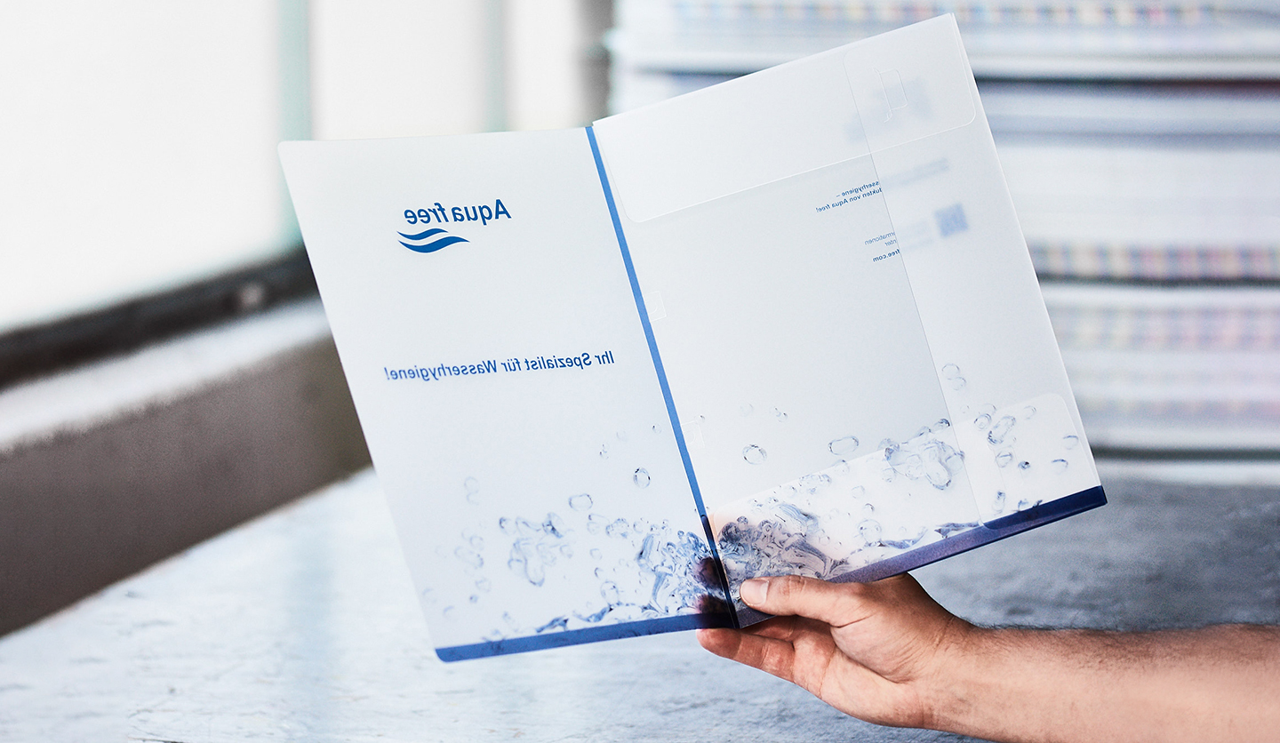 Das transluzente Polypropylen lässt sich einseitig, ein- oder mehrfarbig in Skalen- sowie HKS- und Pantonefarben bedrucken und ist resistent gegen Schmutz und Wasser. Die Mappen sind einfach zu reinigen, langlebig und durch die durchscheinende Optik ein echter Hingucker. Das Polypropylen ist sowohl transluzent als auch weiß opak (blickdicht) bzw. in verschiedenen Färbungen erhältlich. Opake Materialien lassen sich grundsätzlich auch beidseitig bedrucken. Soll die Mappe lösungsmittelresistent sein, empfehlen wir als zusätzlichen Oberflächenschutz eine Mattfoliencellophanierung. Für den besonderen Effekt können wir auf Polypropylen ebenso Heißfolienprägungen aufbringen.