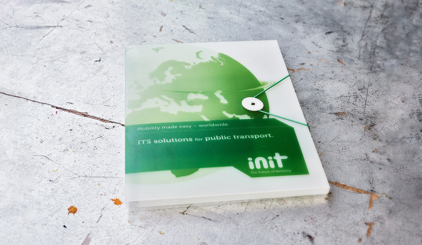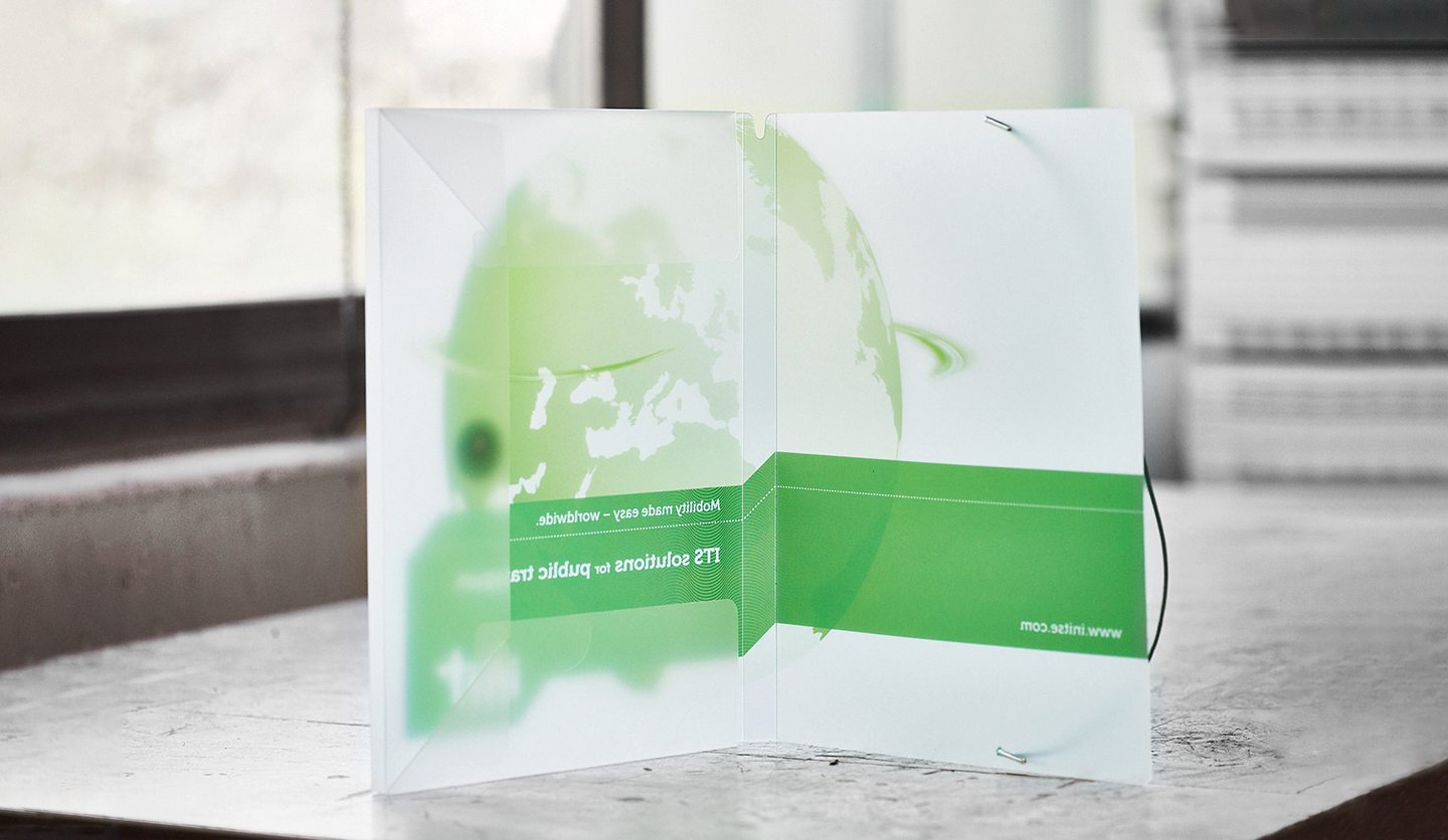 Das transluzente Polypropylen lässt sich einseitig, ein- oder mehrfarbig in Skalen- sowie HKS- und Pantonefarben bedrucken und ist resistent gegen Schmutz und Wasser. Die Mappen sind einfach zu reinigen, langlebig und durch die durchscheinende Optik ein echter Hingucker. Das Polypropylen ist sowohl transluzent als auch weiß opak (blickdicht) bzw. in verschiedenen Färbungen erhältlich. Opake Materialien lassen sich grundsätzlich auch beidseitig bedrucken. Soll die Mappe Lösungsmittelresistent sein, empfehlen wir als zusätzlichen Oberflächenschutz eine Mattfoliencellophanierung. Für den besonderen Effekt können wir auf Polypropylen ebenso Heißfolienprägungen aufbringen.