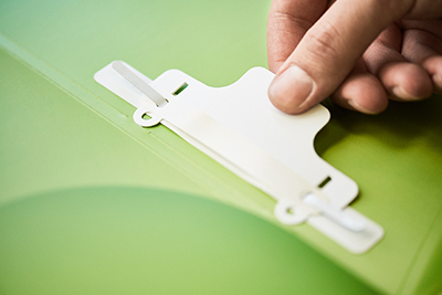 | Rado-Ösen sorgen in Ordnern für Stabilität, Standfestigkeit und Platzersparnis. Zusätzlich kann die Rückenbreite aufgrund der Schlitzstanzungen im Vorderdeckel bei gleicher Füllhöhe reduziert werden. | |