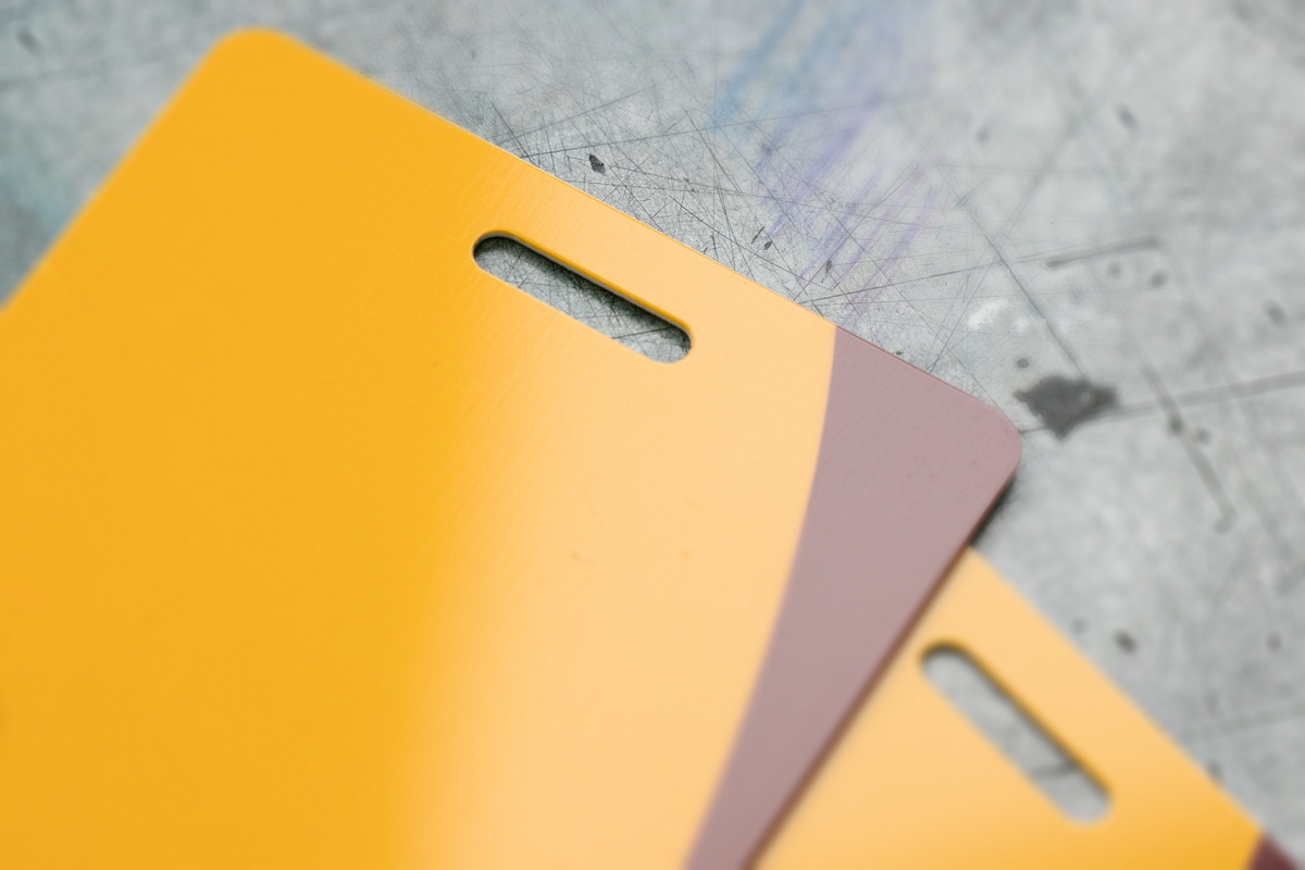 | Produkte, die aus zwei unterschiedlichen miteinander kaschierten Materialien bestehen. Ein typisches Anwendungsgebiet hierfür sind hochwertige Visitenkarten. Dieses Verfahren ermöglicht einen individuellen Look mit zwei unterschiedlichen Oberflächen. Ebenso ist es möglich, ein Sondermaterial beidseitig auf einen Vollkarton, welcher als Trägerelement dient, aufzukaschieren (Milchschnitte-Look). | |