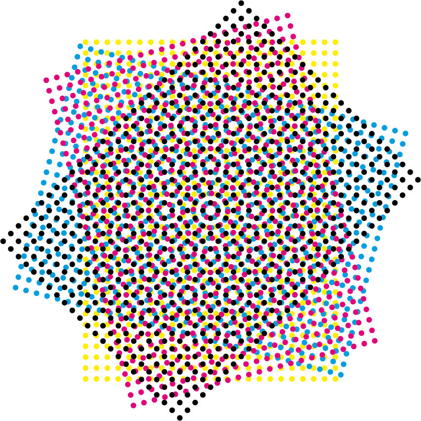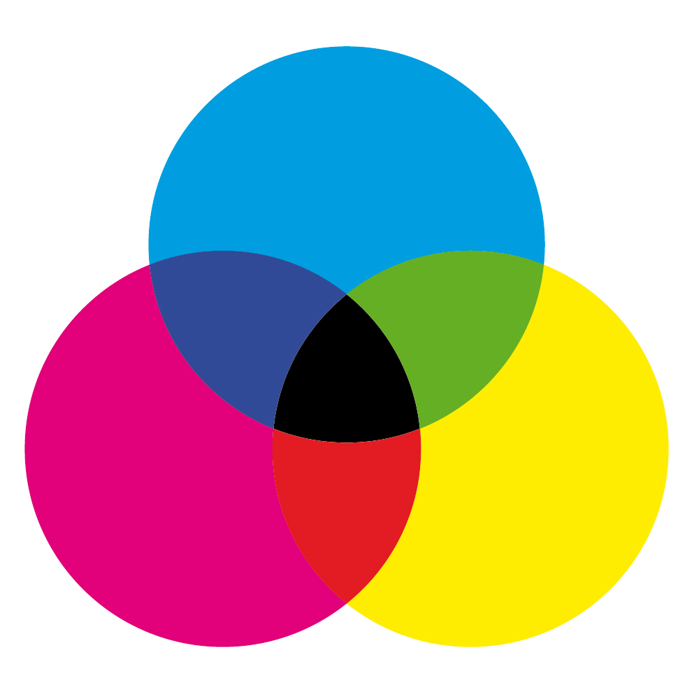 Technische Grundlage im Mehrfarbendruck. Unabhängig davon, was gedruckt werden soll, wird das Produkt immer im CMYK-Farbmodus (Englisch für Cyan, Magenta, Yellow und Key Color (Schwarz, diese Farbe sorgt für zusätzliche Farbtiefe)) erstellt, um Farbverschiebungen oder fehlende Farbinformationen zu vermeiden.