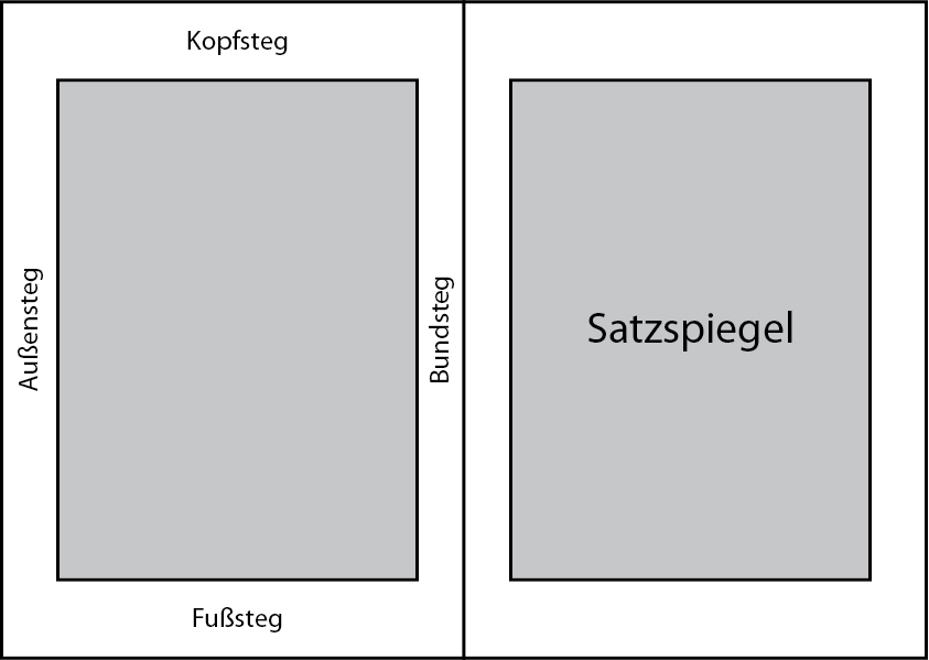 | Als Satzspiegel bezeichnet man die Nutzfläche auf der Seite eines Buches, die mit dem gewünschten Text bedruckt wird. | |