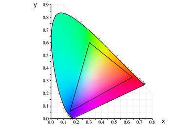 | In einem Farbraum werden alle Farben dargestellt, die über eine farbgebende Methode (Bildschirm, Druckmaschine, etc.) abgebildet werden können. Da einige Farben innerhalb des Farbraums, trotz definiertem Farbort, mit den verfügbaren Farben nicht wiedergegeben werden können, spricht man von einer verlustbehafteten Farbdarstellung. Jeder Farbraum beruht auf einem individuellen Farbmodell, welches gleichzeitig eine spezifische Abbildung des Farbraums in einem allgemeinen Farbraum darstellt. (Typische Farbräume: sRGB, CMYK, CIELab) | |