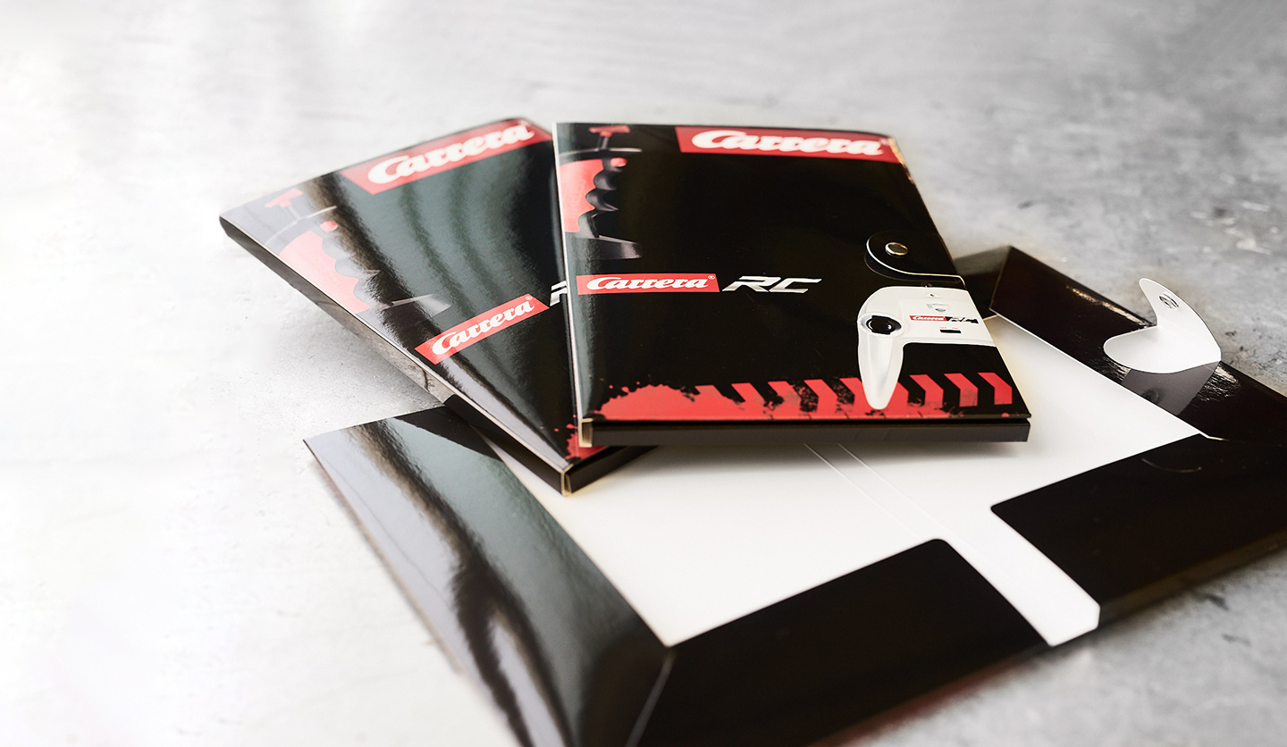 Die Karton-Druckknopf-Sammelmappe ist ebenso in diversen Füllhöhen für das Einlegeformat DIN A5 erhältlich. In diesem Fall verwenden wir jedoch einen 600 g/m² Chromo-Sulfatkarton.