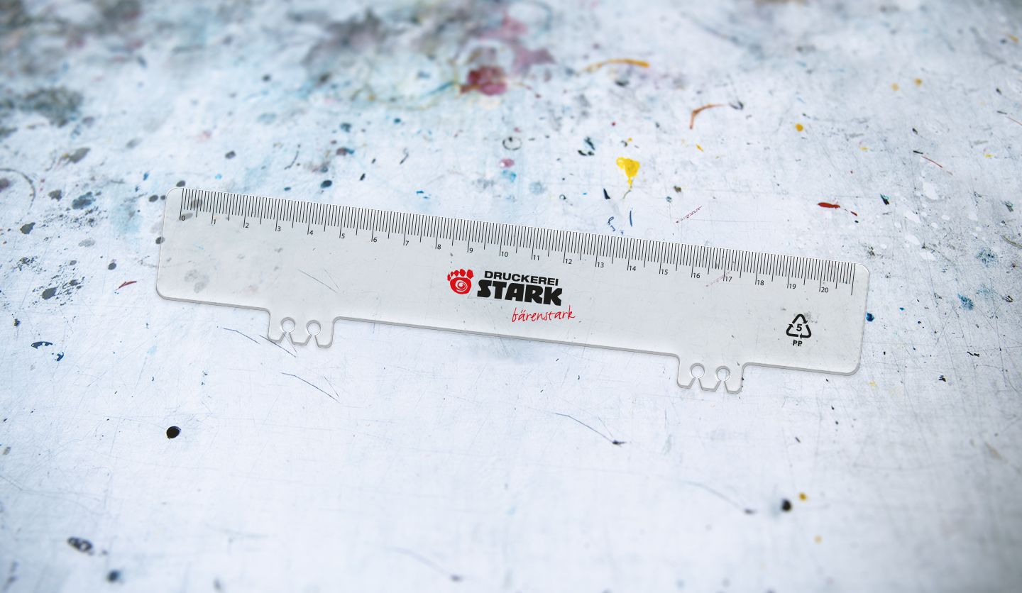 Unsere PP-Lineale werden individuell nach Ihren Wünschen im Offset bedruckt. Auch Rasterdruck, angeschnittener oder abfallender Druck sind möglich. Rufen Sie uns an und teilen uns Ihre Wünsche mit.